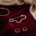 頭部に施されたキュービックジルコニアの輝きが、神秘的で洗練された印象を与えます。細かなディテールで表現された鱗模様がリアリティと高級感を演出し、存在感のある一品です。