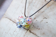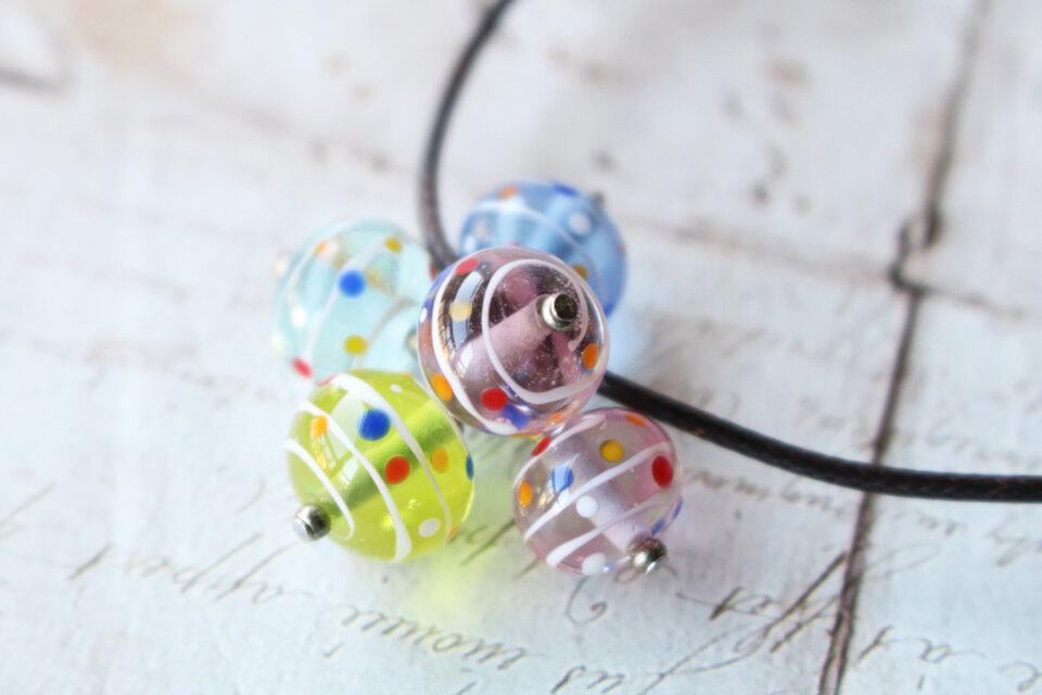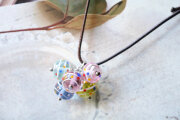 バーナーワークの技法で制作したヨーヨーモチーフのガラスペンダントです。