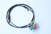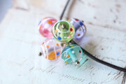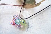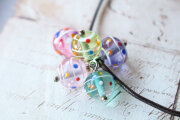 バーナーワークの技法で制作したヨーヨーモチーフのガラスペンダントです。