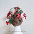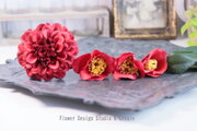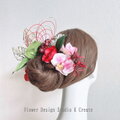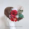 赤いダリアと椿のヘッドドレス 成人式 卒業袴 前撮り 和装髪飾り 成人式ヘア 椿 赤 ダリア 羽根 水引 胡蝶蘭