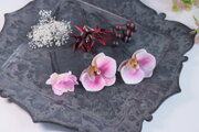 ボルドーの薔薇と葉っぱの髪飾り 1本 薔薇 バラ 髪飾り ダンス髪飾り フローレス フラメンコ 花飾り 頭飾りメッセージ遅くなり申し訳ありません。バラの髪飾り受け取りました。 とても素敵♡大切に使います。 プレゼントもありがとうございました。 橋本明子