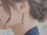 3粒のオリーブラスターのしずくビーズが耳元で揺れる透明感のあるピアス/イヤリングです。