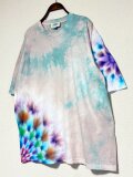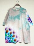 タイダイ ビッグシルエット Tシャツ XLサイズ 曼荼羅 ブルー×ベージュ Hippies Dye HD24-51