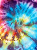 全て染色されるタイダイ染め、絞り染めの作品群。