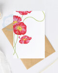 水彩絵の具で描いた、真っ赤なポピーの花のポストカード「3枚セット」です