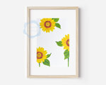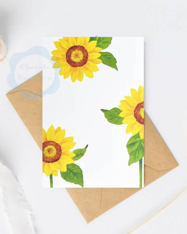 水彩絵の具で描いた、真夏の元気なひまわりの花のポストカード「3枚セット」です