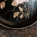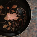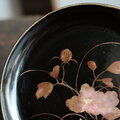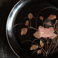 耽美で素敵◆岩場に花。時代物 花文漆芸蒔絵中皿 古漆器 骨董/antiques 古民家 明治時代 i1