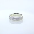 整然と並べられたダイヤモンドと周囲を取り囲むミル打ち細工、全体にはイタリアンジュエリーでよく見られるインチジオーネ(洋彫り)で仕上げた指輪です。