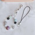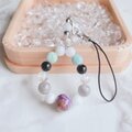 こちらの天然石を組み合わせ、個性あふれるお洒落なストラップに仕上げました。