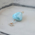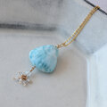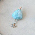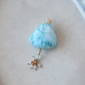 ドミニカの至宝、世界三大ヒーリングストーンのひとつといわれるラリマーを使ったネックレストップです。磁器のように滑らかで、さざなみを映したような、ブルーとホワイトの美しい模様が印象的。表面にダイヤカットが入っているので、光の加減できらきらとした輝きもみられます。