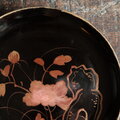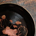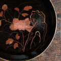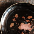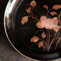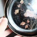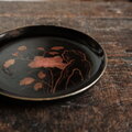 耽美で素敵◆岩場に花。時代物 花文漆芸蒔絵中皿 古漆器 骨董/antiques 古民家 明治時代 i3