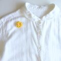 繊細な生地、ブラウスや薄手シャツやTシャツなどに着ける場合は、穴が残ってしまうことがありますので、十分ご注意下さいませ。