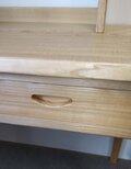 抽斗は左右2杯で引手は突起のない掘り込み式です。