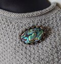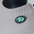 様々な石の模様が生かされサークルにデザインされたブローチ 作家さんのセンスが見事に体現された 逸品だと思います. 大切にさせて頂きます