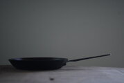 毎日の料理と食事の時間が少し良いものになればと、台所からダイニング廻りで起きている事を想像していく中で、少し浅く厚みのある本体と短めの取手が特徴のフライパンになりました。