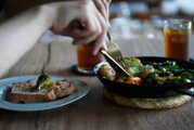 厚みのあるフライパンで焼かれる食材はとても美味しく、目玉焼きや焼き野菜、ステーキ、チーズトーストなど、食材が美味しく焼きあがります。