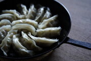 ・取手:短めで、取付位置を低くしてあります。調理中と食卓に並べた時にも邪魔になりにくい事を考慮しています。本体よりも取手の位置を下げているのは、どの様な蓋でも合い易くする為と、餃子を大皿にひっくり返しやすくする為です。
