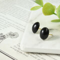ころんっとした可愛い丸み、艶やかな漆黒のオニキスを、シンプルなスタッドピアスに仕立てました。