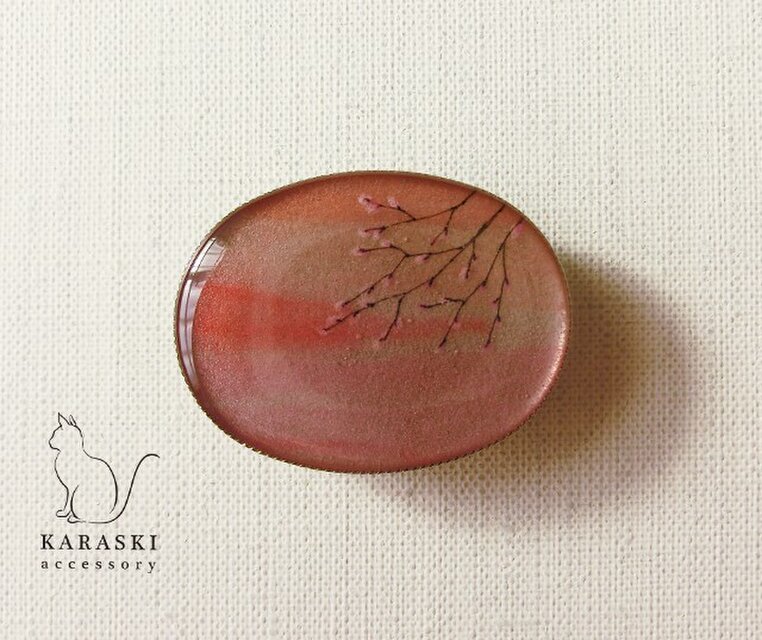 桜を描いた絵を樹脂で閉じ込めた帯留。