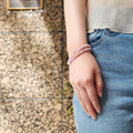 クンツァイトの上品なパープルで手首を包まれる贅沢感があります。