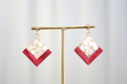 レジンアート スクエアピアス〈真珠色の声・ルビーレッド〉