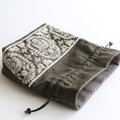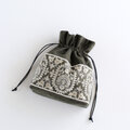 インド刺繍リボンをあしらったマチのある巾着ポーチ