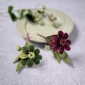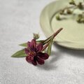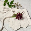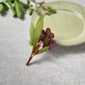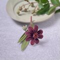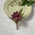 花びらはお洋服に合わせやすいように、シックなブラックパープルに染めて、コロンと可愛らしいつぼみを付け、使いやすい大きさのブローチに仕上がりました。