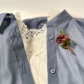 ブルースターも銀木犀も、植物の持つ生理的な張りに満ちているようで小さいながらとても存在感があり、襟元で品格を主張してくれると思いました。ありがとうございます。