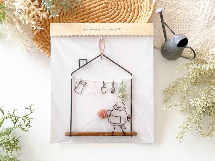 動物やミニチュアガーデニング用品、フレーム部分のワイヤーは