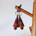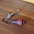 ■カラフルなイタリアンレザーのコインパーツと天然色のウッドビーズを上下に組み合わせて作りました。コロンとして可愛い、触りごこちのいいかたちです。キーリングのほか、チャームやペンダントトップとしてもお使いいただけます。