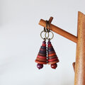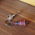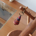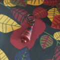 ■カラフルなイタリアンレザーのコインパーツと天然色のウッドビーズを上下に組み合わせて作りました。コロンとして可愛い、触りごこちのいいかたちです。キーホルダーのほか、チャームやペンダントトップとしてもお使いいただけます。