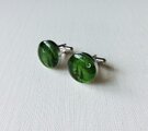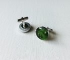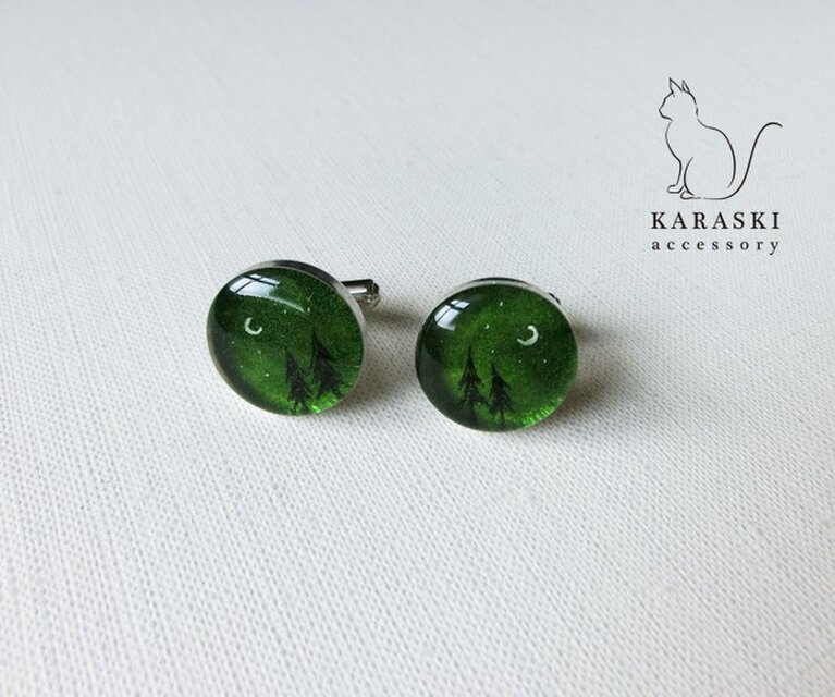 手描きの絵を樹脂で閉じ込めたカフスです。