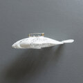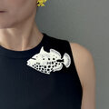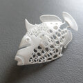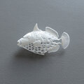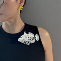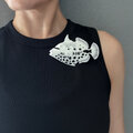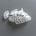 水深50mくらいのサンゴ礁などに生息するトロピカルフィッシュのモンガラカワハギをモチーフにブローチを製作しました。