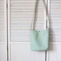 爽やかなミントグリーンが目を引く、丸底ショルダーバッグ。