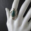 瑞々しいブルー、そしてカットがとても美しいトパーズを、優しく葉で包み込んでいるデザインです。 燻加工で葉の陰影も美しく、とても美しいリングでした。