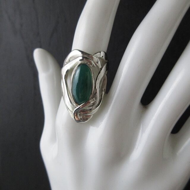 縦長の瑪瑙を引き立てる幅広のリングにしました。