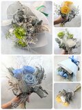 プリザーブドフラワー/大輪空色ローズと小花の花束柔らかな風/花束ラッピング