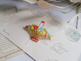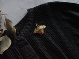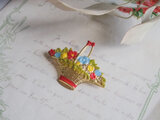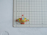 カラフルなエナメルの花かごブローチ