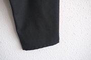 股下はマチが取られていてサルエルパンツのようにかなりの余裕があり、膝から下の立体的な裁断は、しっかり絞られていて動きやすさは抜群です。ブーツとも相性が良いですし、軽めのボリュームの靴でもすっきりした足元で綺麗です。
