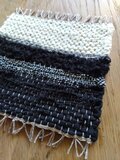 洋服の生地のハギレを使い、裂き織りのコースターを織りました。