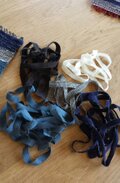 洋服の生地のハギレを使い、裂き織りのコースターを織りました。