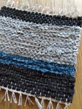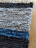 縦糸も生成りの麻糸です。裂き布を活かすために、粗めの密度にしたので刺し子のようにも見えます。