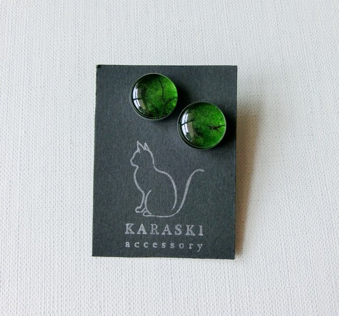 手描きのオリジナルイラストをレジンで閉じ込めたピアスです。