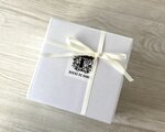 付属の白い箱にお入れしリボンをした状態で梱包しお届け致します。