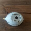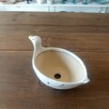 石膏型と手びねりで制作したアヒルの植木鉢です。顔から首までは白マット釉薬で仕上げてます。他の部分は白化粧土の焼き締めです。中と小のサイズで作りました。こちらは小サイズのBになります。画像4番目でご確認下さい。