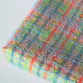 オレンジ、ブルー、グリーンのカラフルな糸が織り交ぜられ、