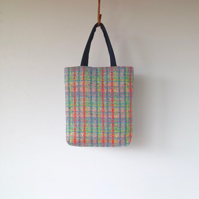 マチが4㎝と薄い作りのコンパクトなトートバッグに仕立てました。