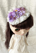 ドール用レースと染め花のスモールヘッドドレス(MLフリー・ビオラ・ライトパープル)