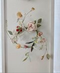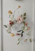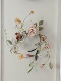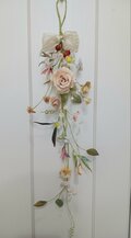 淡いサーモンピンクに染めた薔薇、小花、サクシフレッジ、すみれ、コーンサラドなどで、アンティークなガーランドに仕上げました。