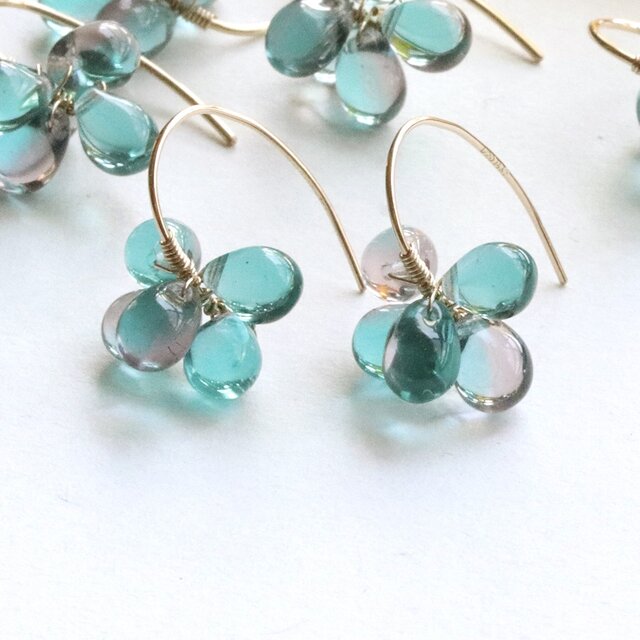 小さな紫陽花の花束のようなビアスに仕立てました。